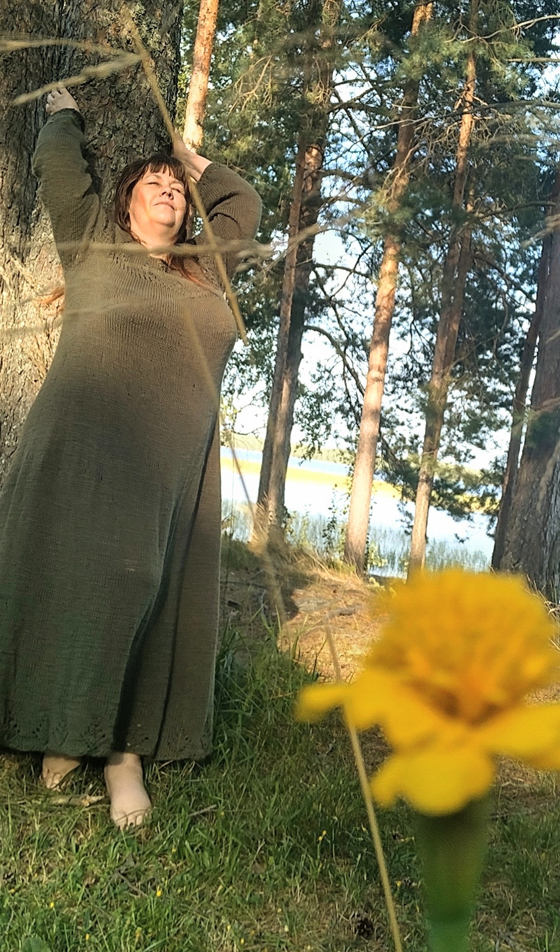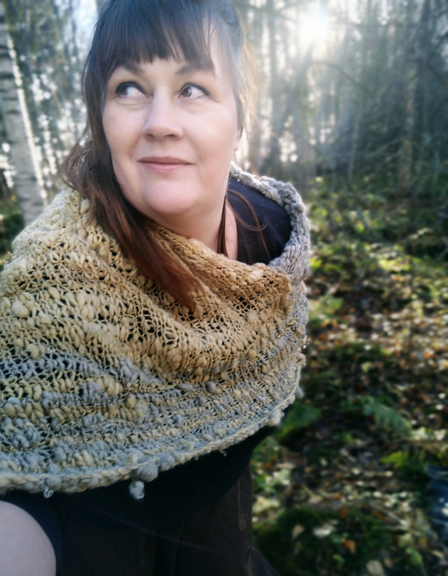 -Teen myös erilaisia käsitöitä ajatuksella, että ne ovat osa hyvinvointiamme. Kehrään, neulon, kudon, huovutan, kasvivärjään jne. Luonto ilmenee monintavoin elämässäni ja näkyy myös luomuksissani. Kierrätys ja villa ovat löytäneet paikkansa myös luomuksissa.